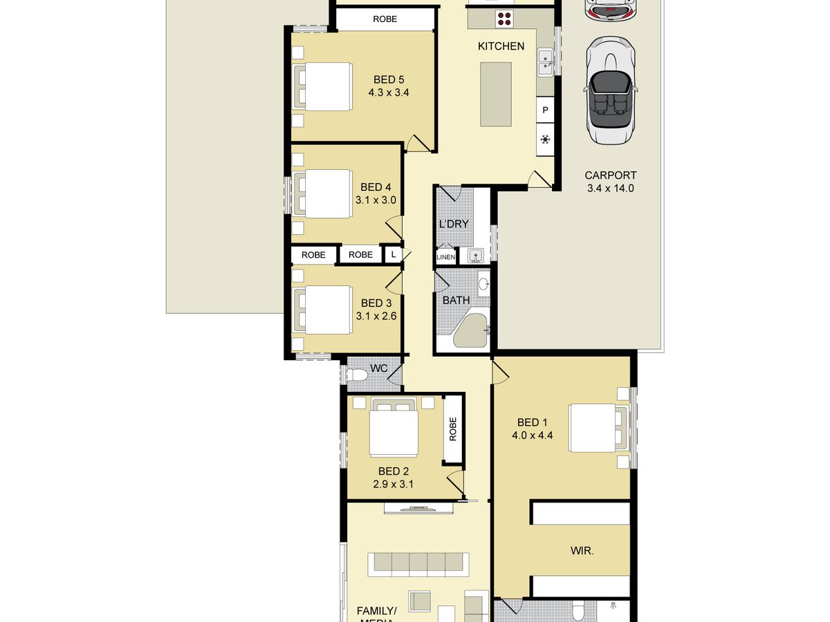 The home genuinely offers 5 bedrooms with built ins to all and 3m walk in robe and grand ensuite to master.