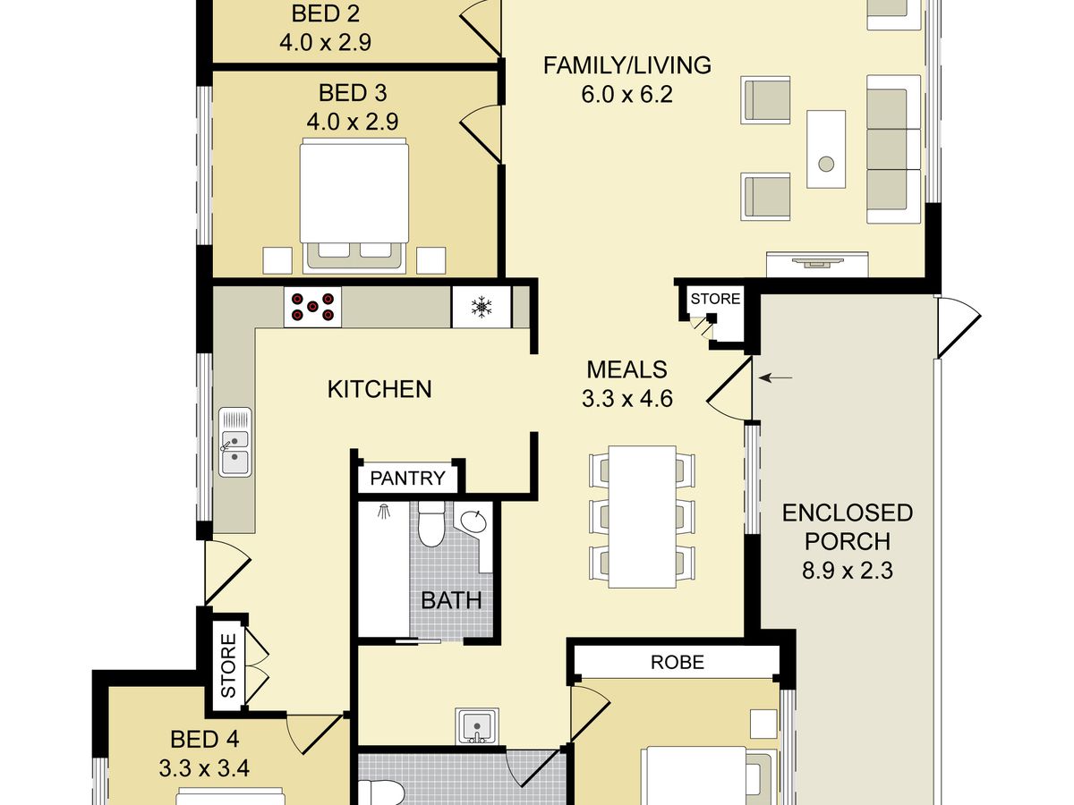 The home offer 4 great sized bedrooms with built ins to 2 bedrooms. Plus a great sized meals area and an oversized formal loungeroom with combustion fireplace and air conditioning.