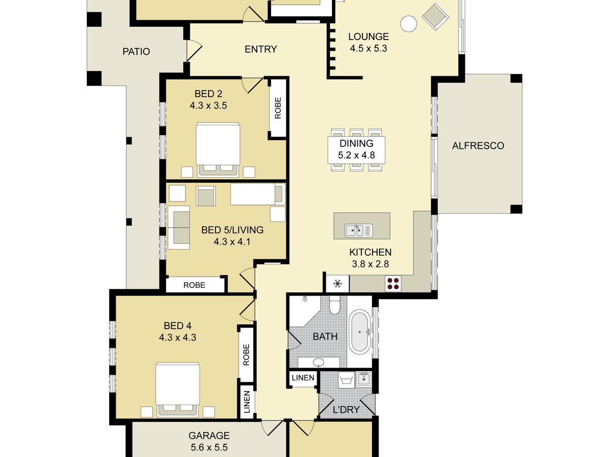Inside, the home features 4 generous bedrooms plus a master suite complete with walk in robe and private ensuite. A 5th bedroom with robe provides flexibility - ideal as an additional living space, guest room, or home office.